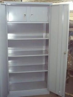 Fabricados en acero LAF-SIDER PERU 0.6mm. , 08mm. de espesor pintados y secados al horno , CON PINTURA AL POLVO , previo proceso de decapado y fosfatizado en acabado texturizado colores GRIS modelos con caja de valores 03 anaqueles, modelos con caja de valores con 4 anaqueles Pintura epoxi RAL 7035 Gris. MANIJA TIPO CREMONA