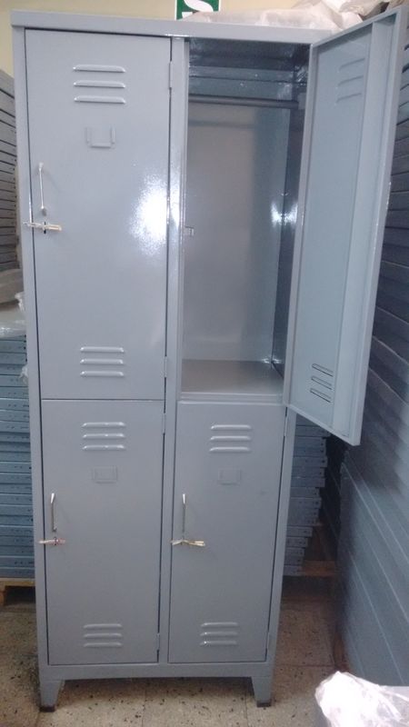 Fabricados en acero LAF-SIDER PERU 0.6mm. , 08mm. de espesor pintados y secados al horno , CON PINTURA AL POLVO , previo proceso de decapado y fosfatizado en acabado texturizado colores GRIS modelos con caja de valores 03 anaqueles, modelos con caja de valores con 4 anaqueles Pintura epoxi RAL 7035 Gris. MANIJA TIPO CREMONA